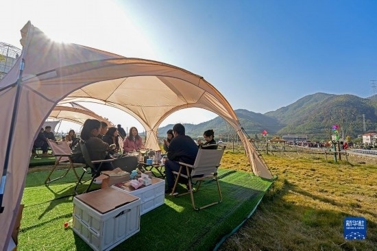 11月25日,在杭州市臨安區(qū)郎家村,游客在稻田文化節(jié)上體驗(yàn)田園風(fēng)光。