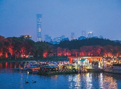 北京市朝陽區(qū)通過建設亮馬河國際風情水岸,以河道復興引領城市更新,讓市民和游客樂享都市生態(tài)美景,感受多彩首都文化。圖為亮馬河國際風情水岸風光。 王 初攝(人民圖片)