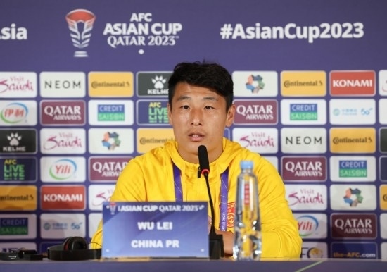 1月16日,中國隊(duì)球員武磊在發(fā)布會(huì)上。新華社記者 丁汀 攝