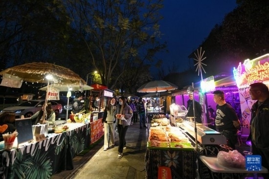 成都:“夜經濟”點亮城市活力 這是2月28日在四川省成都市錦江區(qū)拍攝的三色路夜市。近......