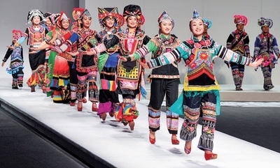 云南省楚雄彝族特色服飾在北京秋季國(guó)際時(shí)裝周閃亮登場(chǎng)。圖為永仁縣委宣傳部提供
