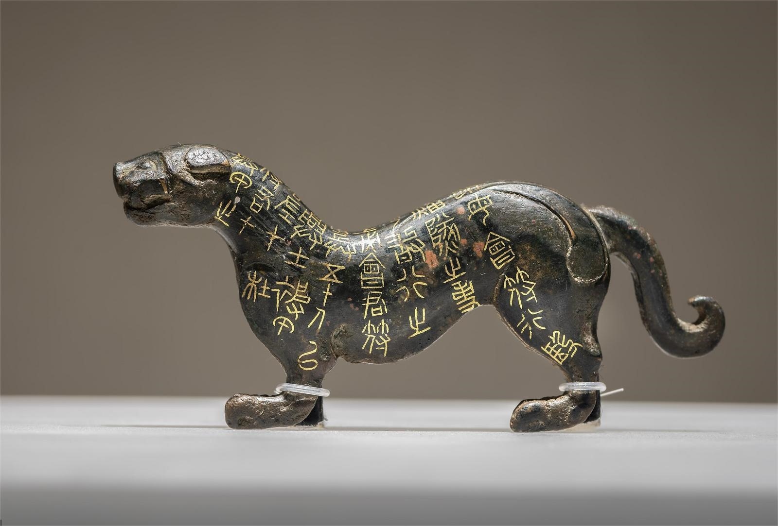 2300年前的戰(zhàn)國錯金杜虎符,讓人穿越歷史,感受戰(zhàn)國時期沙場秋點兵的磅礴氣勢。陜西歷史博物館藏的錯金杜虎符是一只霸氣虎,作行走狀,昂首,尾巴蜷曲。虎符上刻著:“兵甲之符。右在君,左在杜。凡興士被甲,用兵五十人以上,必會君符,乃敢行之……”共9行40字,寫明了虎符的用法和調(diào)兵范圍。使用的時候,虎符必須左右兩半嚴(yán)絲合縫地對合在一起才能起效,這也是“符合”一詞的來歷。