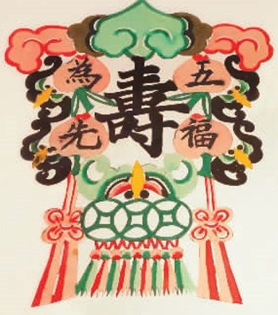 展出的紙影《五福壽為先》。