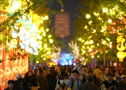 今年中秋假期,“京彩燈會”吸引了超過12萬名游客。國慶假期前4天,游客量達(dá)7萬余人。除了大飽眼福,燈會還設(shè)立150余家特色商鋪,覆蓋老字號、非遺、文創(chuàng)、餐飲美食等,豐富游客體驗(yàn)。多家知名餐飲企業(yè)在燈會擺攤設(shè)點(diǎn)為游客服務(wù),賞燈之余還能享受大廚現(xiàn)做的星級美食。