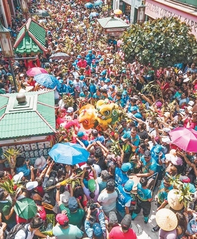 如今,舞龍舞獅已融入秘魯社會(huì)。每年中國春節(jié),醒獅團(tuán)都會(huì)在唐人街游行表演,喜慶的鑼鼓振奮人心,龍獅獻(xiàn)瑞帶來歡樂祥和。秘魯民眾走上街頭,手持他們稱為“中國竹子”的轉(zhuǎn)運(yùn)竹,簇?fù)碓邶埅{周圍,爭相看一看、摸一摸,希望沾上喜氣與幸運(yùn)——這已成為秘魯一大民俗。在秘魯人的婚禮上,舞獅已成為一種時(shí)尚。