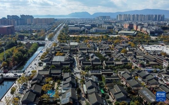 12月8日拍攝的官渡古鎮(zhèn)一景(無(wú)人機(jī)照片)。