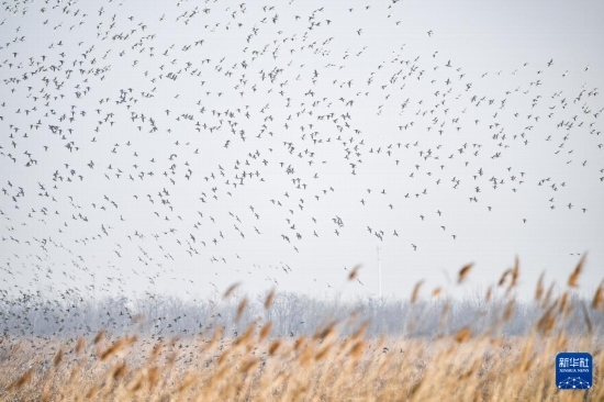 這是2月26日在天津七里海濕地自然保護(hù)區(qū)拍攝的“鳥浪”。