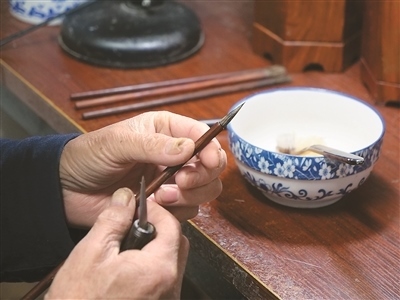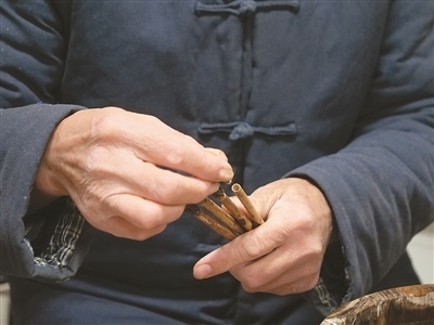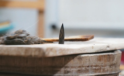“無論是制作哪一類品種的宣筆,要能實(shí)現(xiàn)‘尖、齊、圓、健’均屬不易,需經(jīng)歷選料、水盆、制桿、裝套等多道工序、100多個環(huán)節(jié)?!币灾茥U為例,佘征軍介紹,工人需要先將筆桿磨平,再用工具在筆桿上挖出裝筆頭的洞,這套工藝沒有特定的參數(shù)可參考,全憑工人的手上感覺?!皩W(xué)徒入行,一般3到5年才能完整學(xué)會宣筆制造流程;要想做出一支優(yōu)秀的宣筆,至少10到12年的學(xué)習(xí)實(shí)踐;而要想學(xué)‘精’,需要一輩子的時(shí)間?!辟苷鬈娬f。