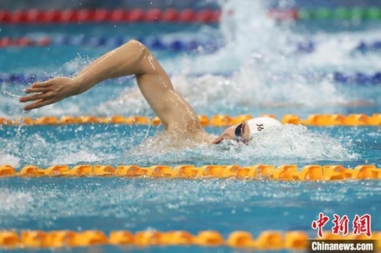 3月19日,在山東青島舉行的2025年全國(guó)春季游泳錦標(biāo)賽中,游泳奧運(yùn)冠軍孫楊?yuàn)Z得男子400米自由泳銀牌。圖為孫楊在比賽中。中新社記者 田雨昊 攝
