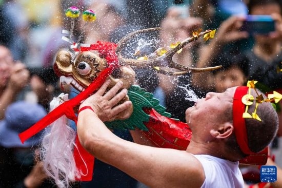 5月5日,“魚(yú)行醉龍節(jié)”巡游隊(duì)伍在活動(dòng)上表演。