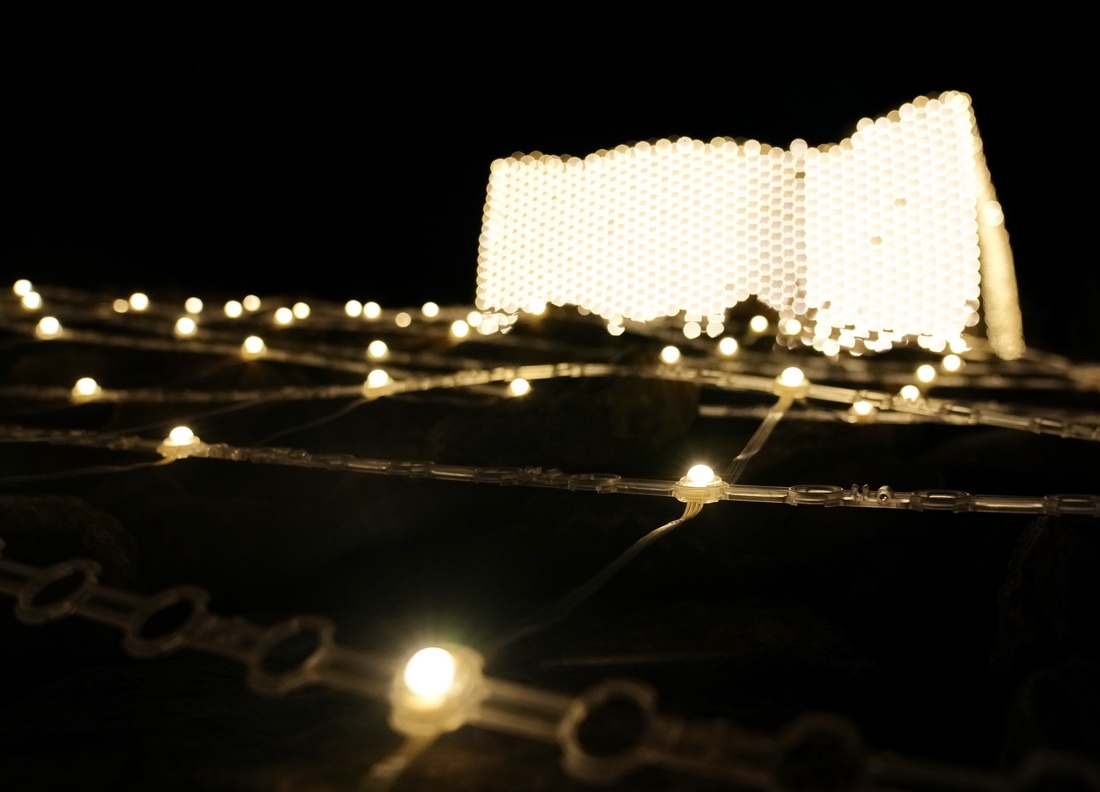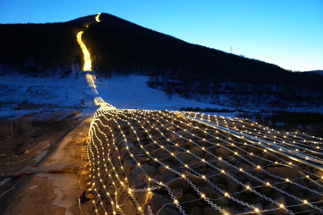 這是崇禮長城景觀展示亮化工程現(xiàn)場的燈帶(12月30日攝)。新華社記者 楊世堯 攝