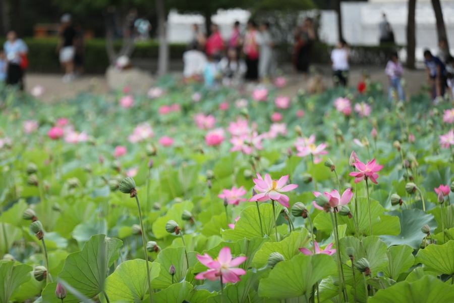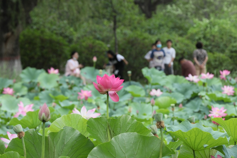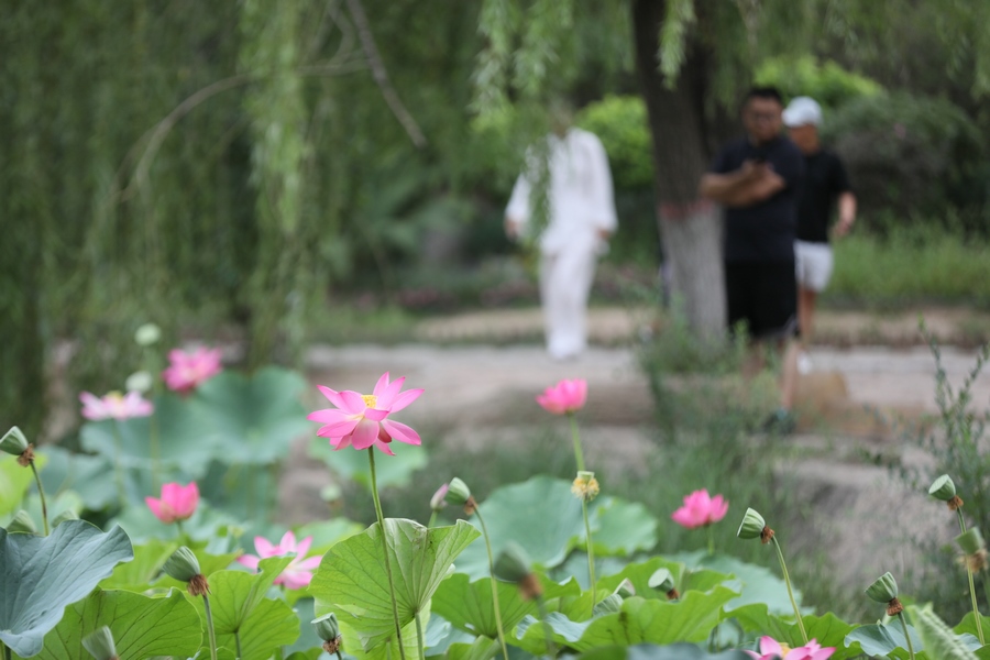 7月30日,呼和浩特青城公園的荷花進(jìn)入最佳觀賞期,吸引眾多游人前來打卡。
