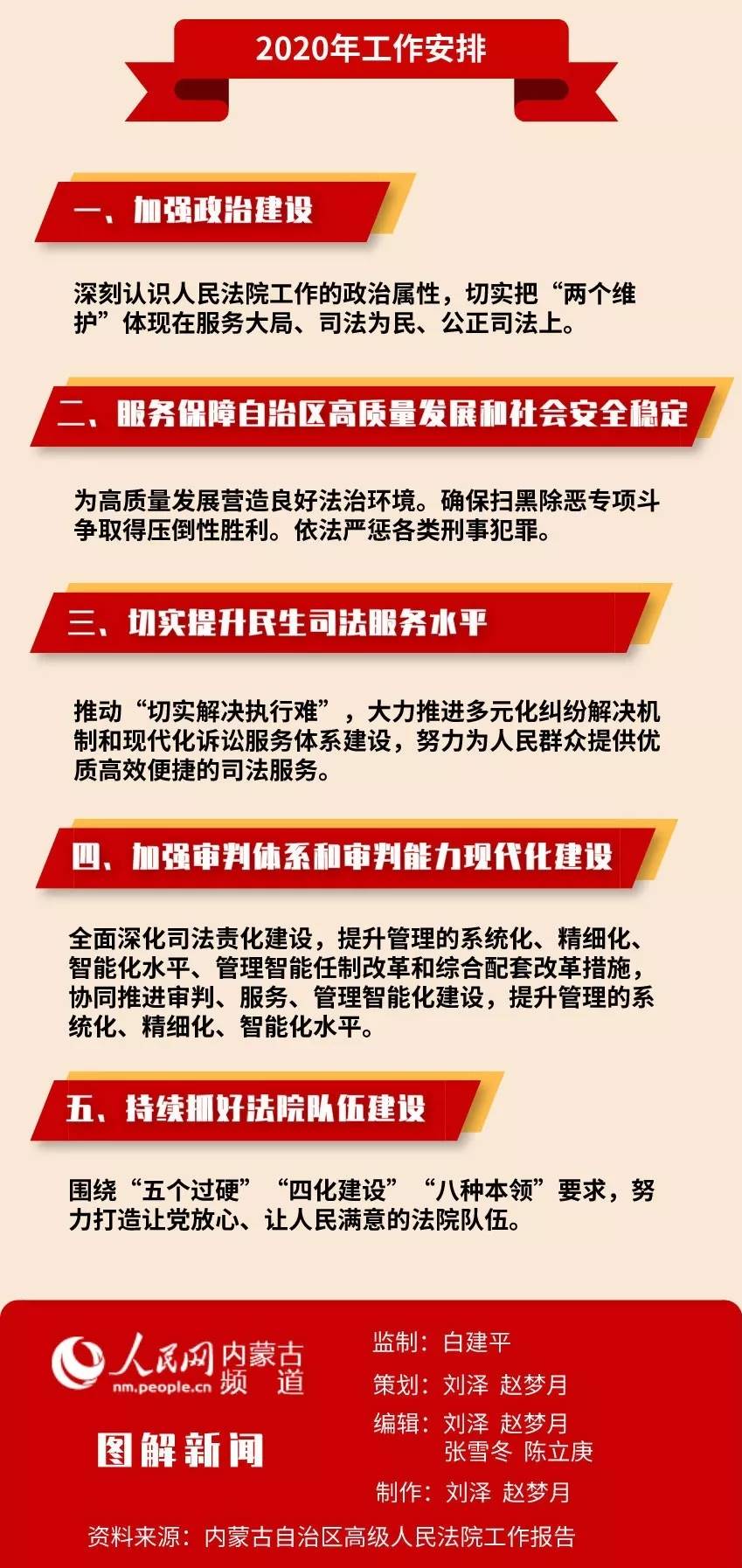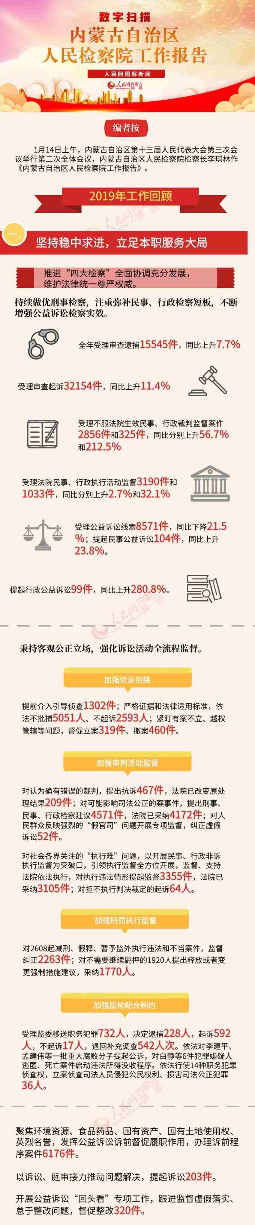 會(huì)上,內(nèi)蒙古自治區(qū)高級(jí)人民法院院長(zhǎng)楊宗仁作《內(nèi)蒙古自治區(qū)高級(jí)人民法院工作報(bào)告》,內(nèi)蒙古自治區(qū)人民檢察院檢察長(zhǎng)李琪林作《內(nèi)蒙古自治區(qū)人民檢察院工作報(bào)告》。“兩院”工作報(bào)告都有哪些看點(diǎn)?今年兩會(huì),小編繼續(xù)帶您看圖說(shuō)兩會(huì)。