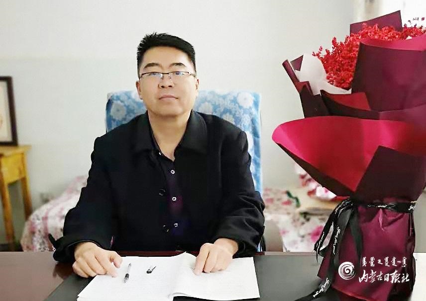 土默特右旗薩二中教師喬炳光接受采訪。