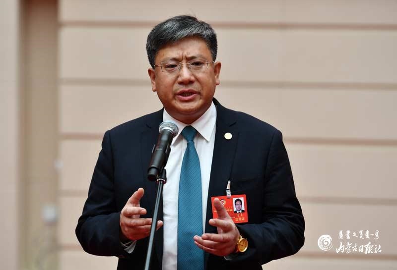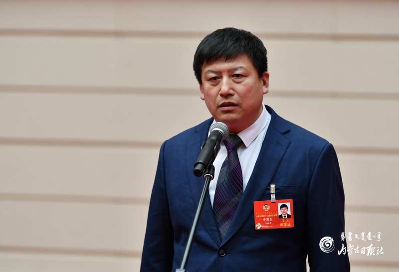 自治區(qū)政協(xié)委員李國良回答記者提問。內(nèi)蒙古日報記者 馬建荃攝