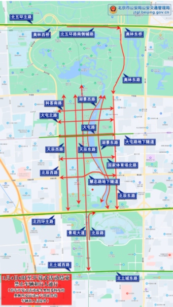 七、開(kāi)幕式期間,將適時(shí)對(duì)北四環(huán)主輔路(健翔橋至安慧橋)采取臨時(shí)交通管制措施,禁止車(chē)輛及行人通行。