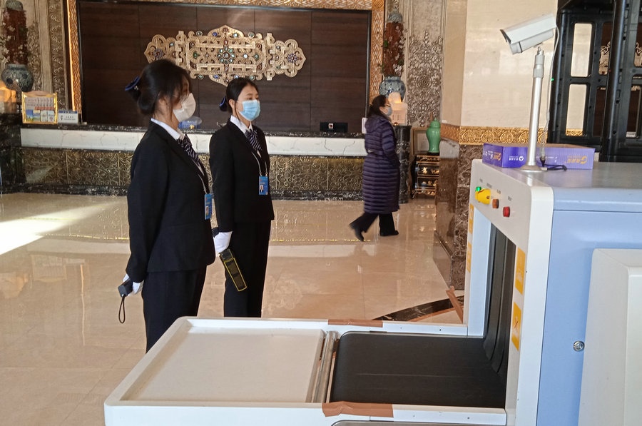 2022年內蒙古自治區(qū)“兩會”召開在即,會議各項準備工作基本就緒。圖為人大代表駐地,安檢人員已做好準備。 北疆新聞網、北疆新聞APP、北疆云記者 王豐攝影報道