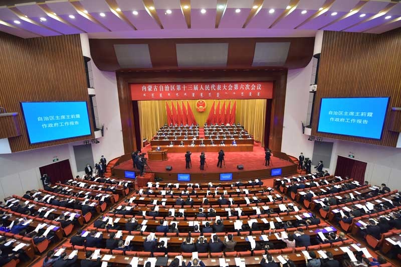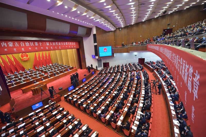 1月21日上午9時,自治區(qū)第十三屆人民代表大會第六次會議在內(nèi)蒙古人民會堂隆重開幕。記者 馬建荃攝