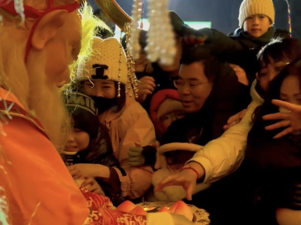 在長春動植物公園,游客領取龍年蟠桃。新華社記者趙丹丹 攝