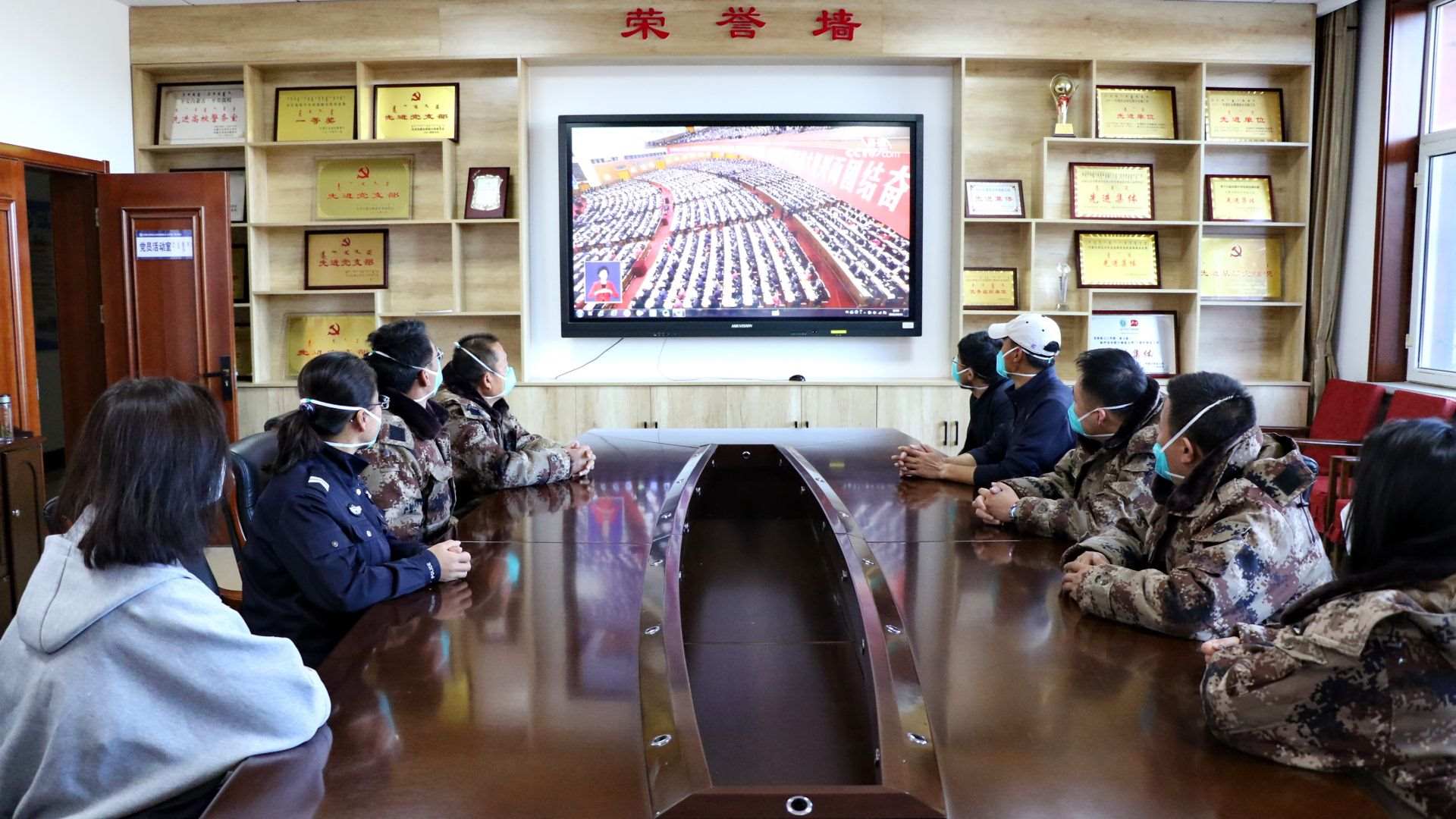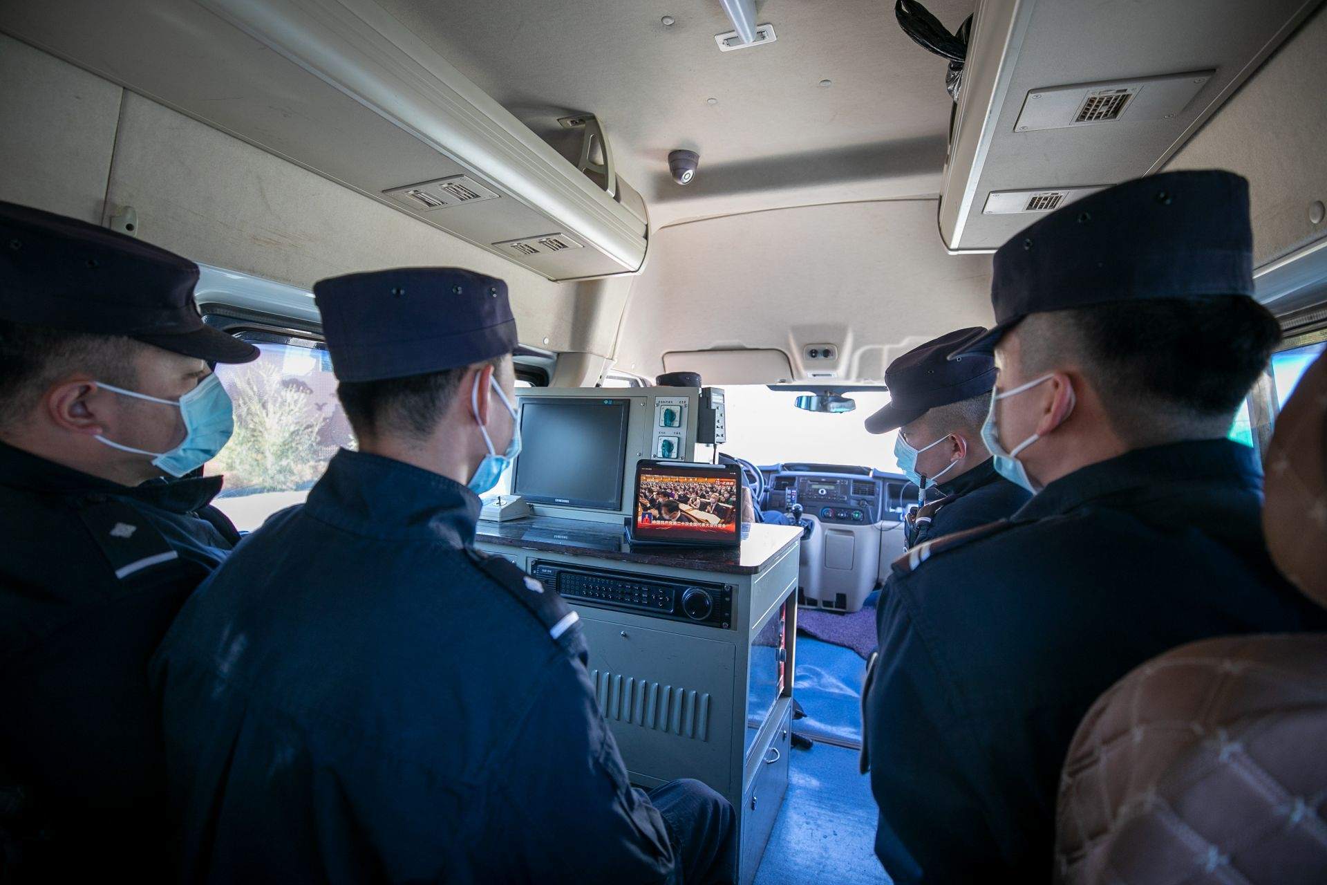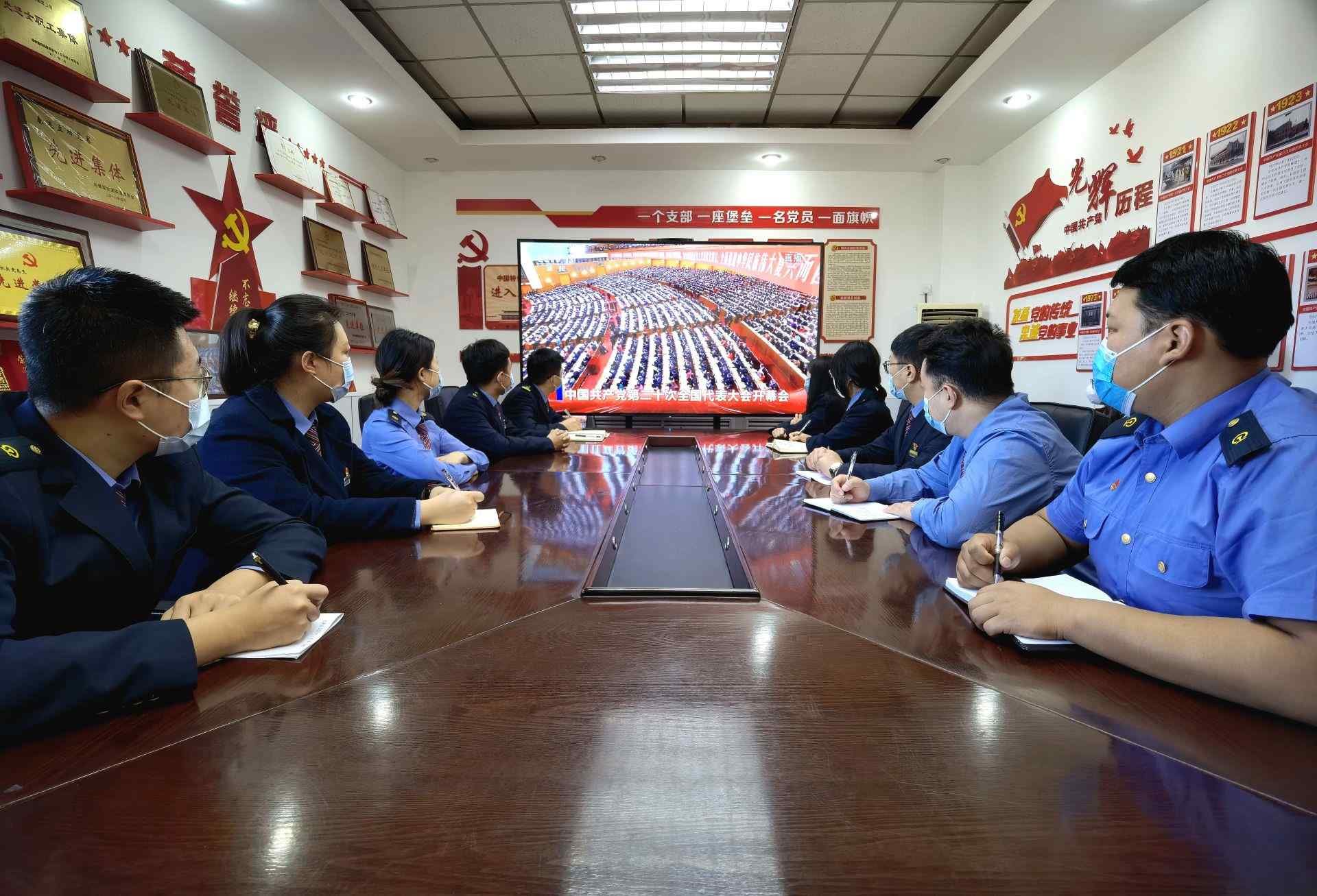 二連出入境邊防檢查站民警收看黨的二十大開(kāi)幕會(huì)。郭鵬杰攝