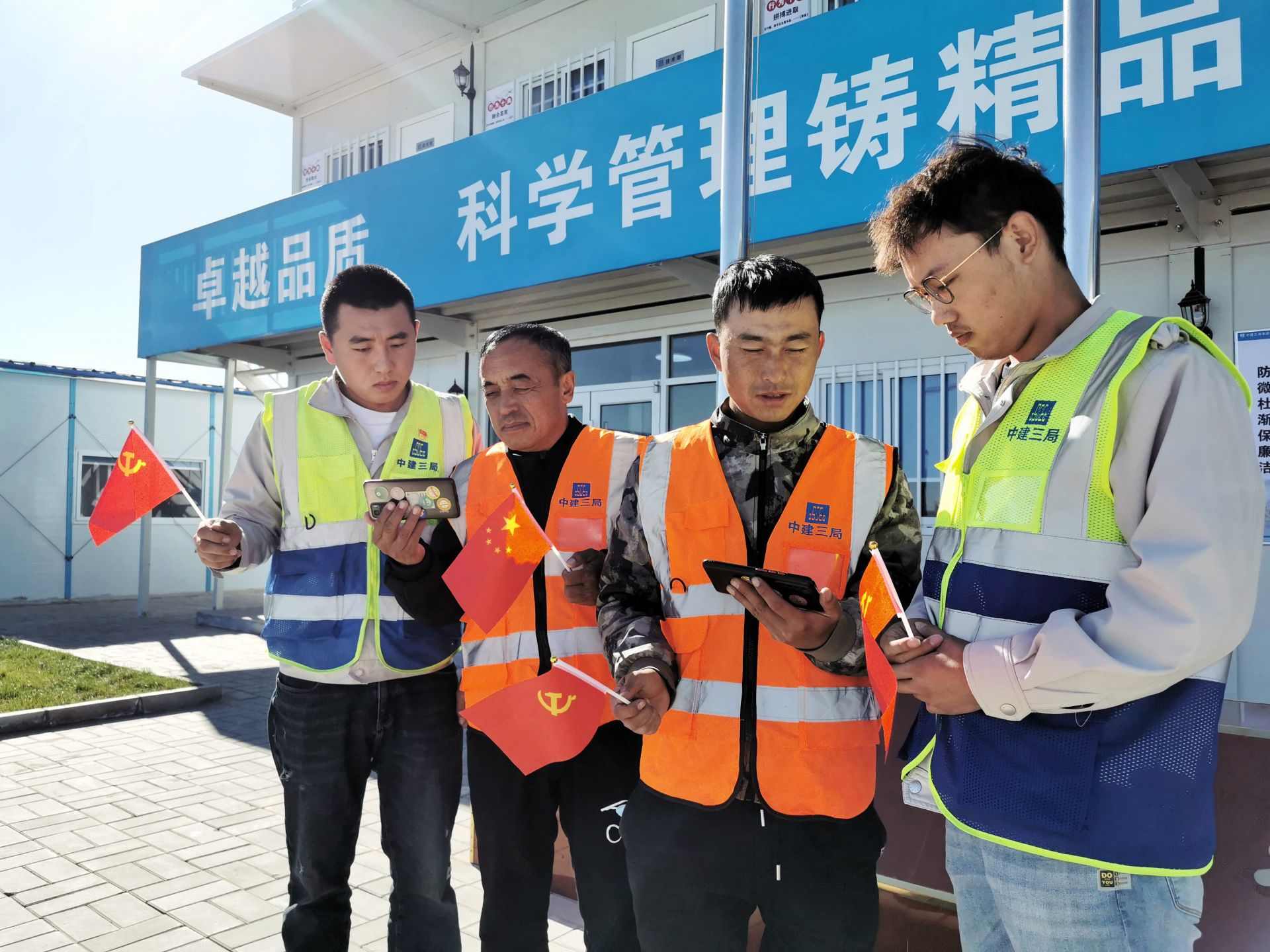 中建三局呼和浩特建設(shè)項(xiàng)目施工人員收看黨的二十大開(kāi)幕會(huì)。曹楨攝