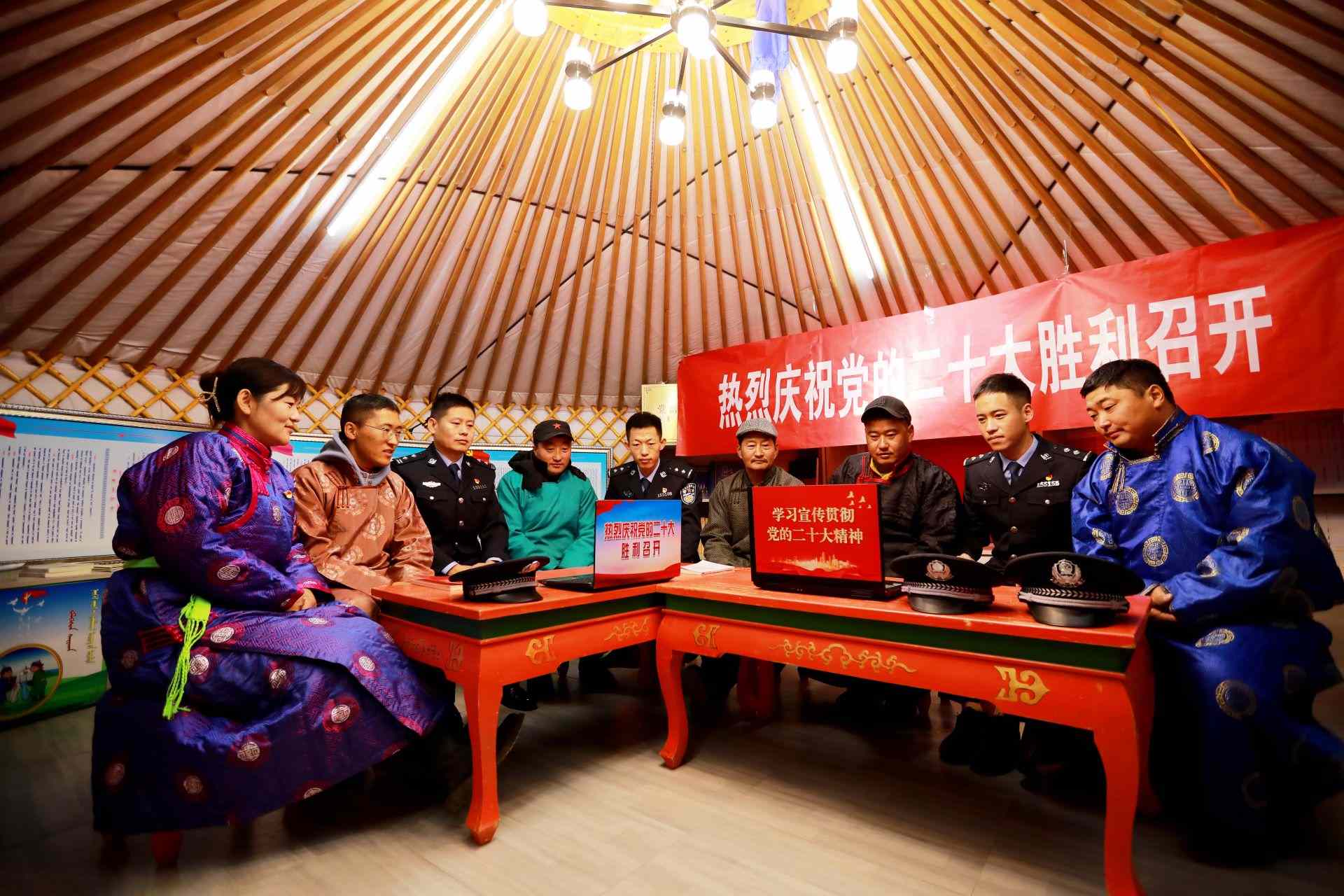 蘇尼特左旗邊境管理大隊(duì)民警與群眾一同收看黨的二十大開(kāi)幕會(huì)。任利勇攝