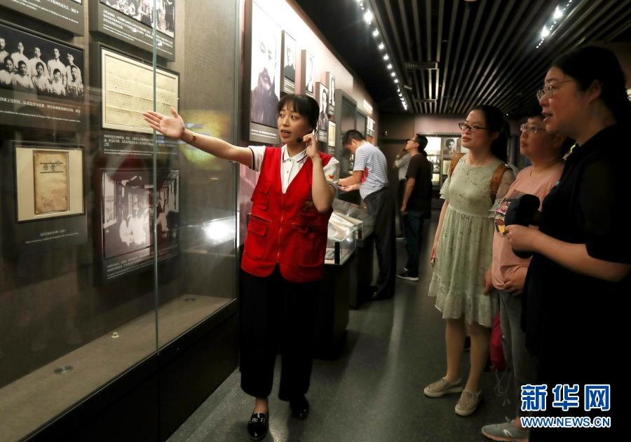 1月20日,“黨的誕生地”志愿服務(wù)隊隊員、上海大學(xué)的學(xué)生在中共一大會址紀(jì)念館為觀眾進(jìn)行講解(2019年6月22日攝)。新華社記者 劉穎 攝