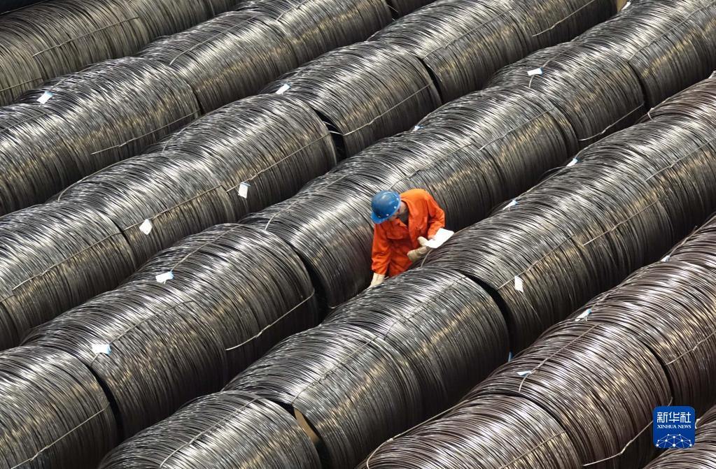 2017年5月15日,東北特鋼集團工作人員在核對入庫的合金鋼大盤重線材產品標識。新華社發(fā)(劉德斌 攝)