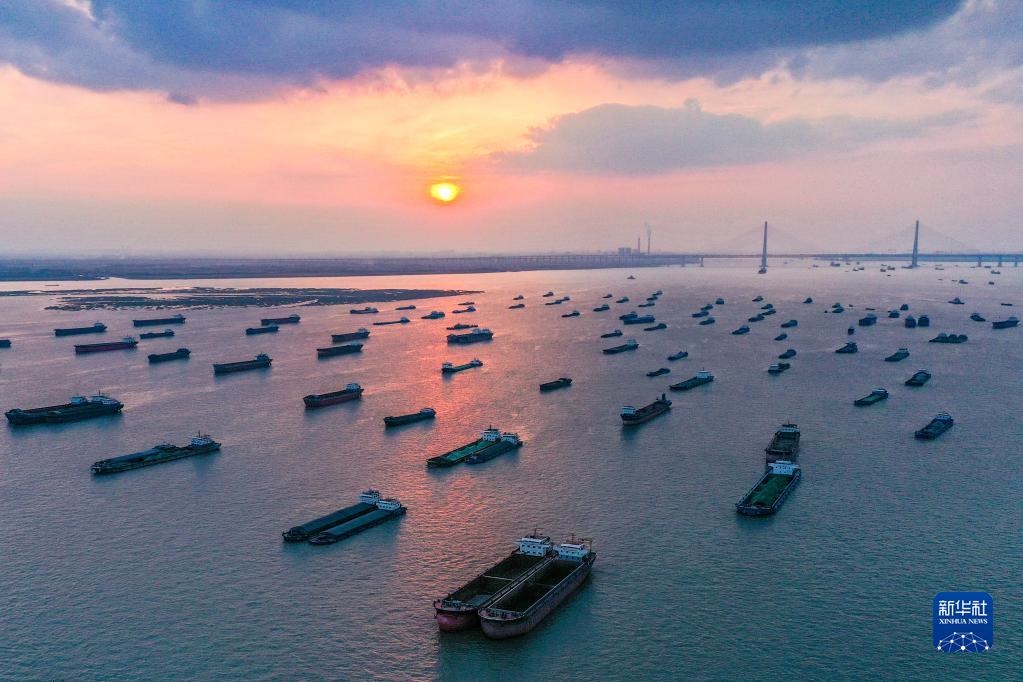 這是2021年10月25日拍攝的長(zhǎng)江南通段(無(wú)人機(jī)照片)。新華社記者 李博 攝