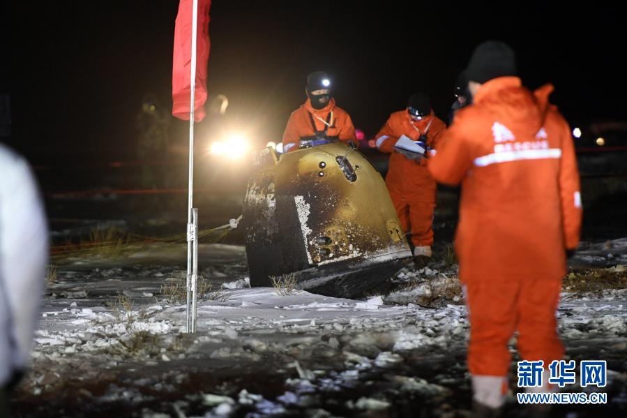 12月17日凌晨,嫦娥五號返回器攜帶月球樣品,采用半彈道跳躍方式再入返回,在內(nèi)蒙古四子王旗預(yù)定區(qū)域安全著陸。新華社記者 任軍川 連振 彭源 攝