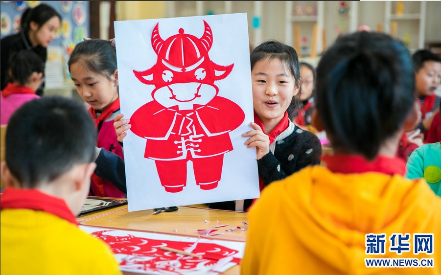 元旦臨近,內(nèi)蒙古自治區(qū)呼和浩特市玉泉區(qū)恒昌店巷小學(xué)開(kāi)展“傳統(tǒng)文化迎新年”主題活動(dòng)。同學(xué)們?cè)诶蠋熤笇?dǎo)下,制作以生肖“牛”為主題的剪紙、書(shū)法、面塑作品,在傳承傳統(tǒng)文化中表達(dá)對(duì)新年的美好期望。